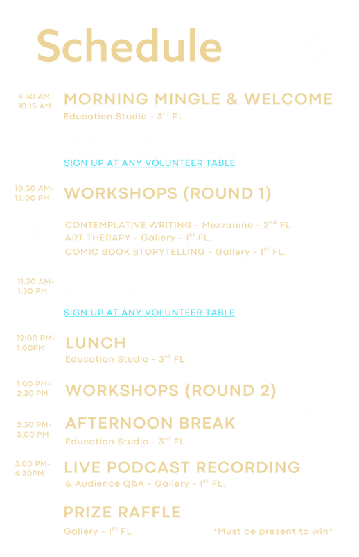Feel free to pick one session or stay all day...the FEST! is a casual, revolving door experience, not a formal conference. The event schedule makes clear what times the workshops begin. The other experiences are first-come, first-served, and more info. will be available at the Welcome tables on the day.